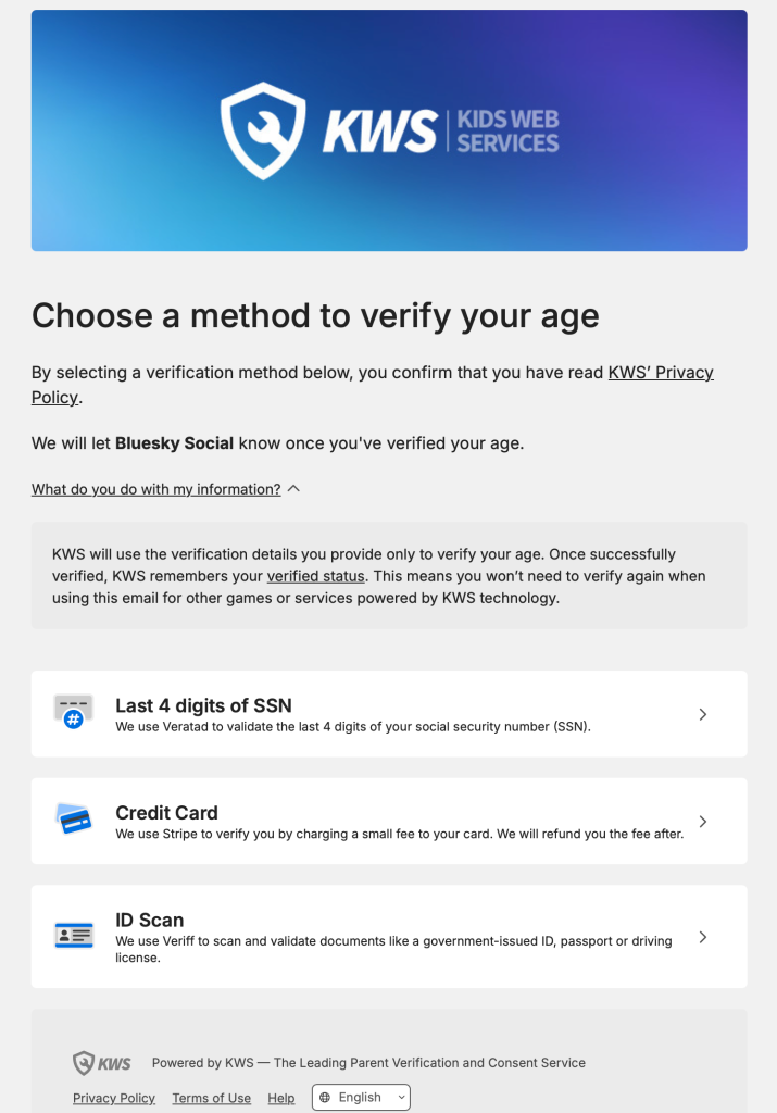 Bluesky says the age verification process is “designed with your data privacy in mind” and that it doesn’t have access to verification information shared with KWS.
