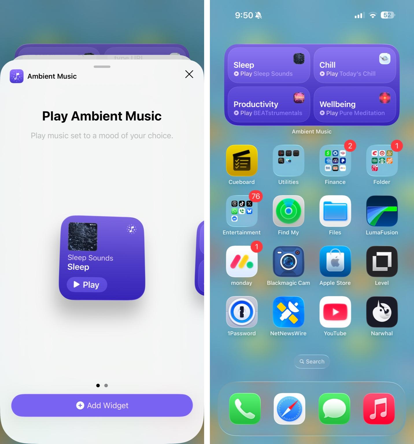 Since iOS 18.4 we’ve been able to invoke ambient music playlist playback via Control Center, but in iOS 26.4 Apple is making this easier thanks to two new ambient music widgets. The widgets, available in small and medium sizes, enable one-tap playback of Apple’s suggested or custom playlists directly from the iOS Home screen.