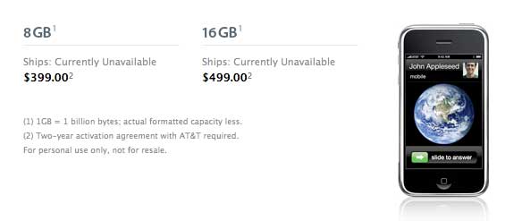 The company’s iPhone pages now reveals the following message: “Please note: 8GB and 16GB iPhone are no longer available.”
